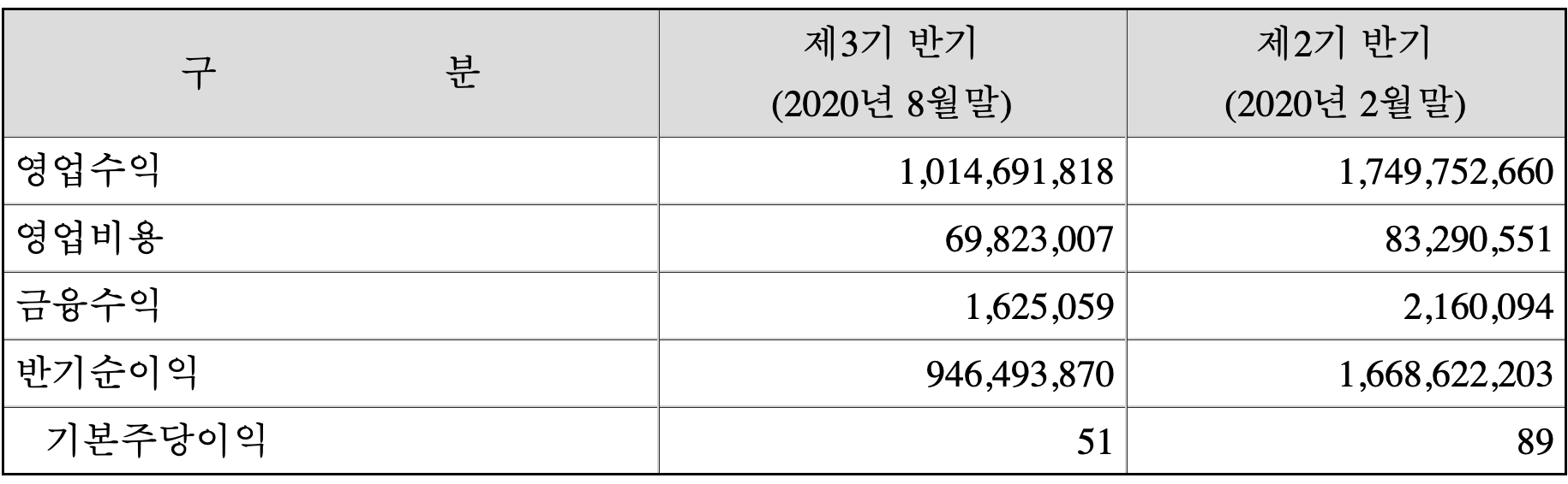 ⊙ 'NH프라임리츠' 재무정보(반기보고서)는 아래와 같습니다.