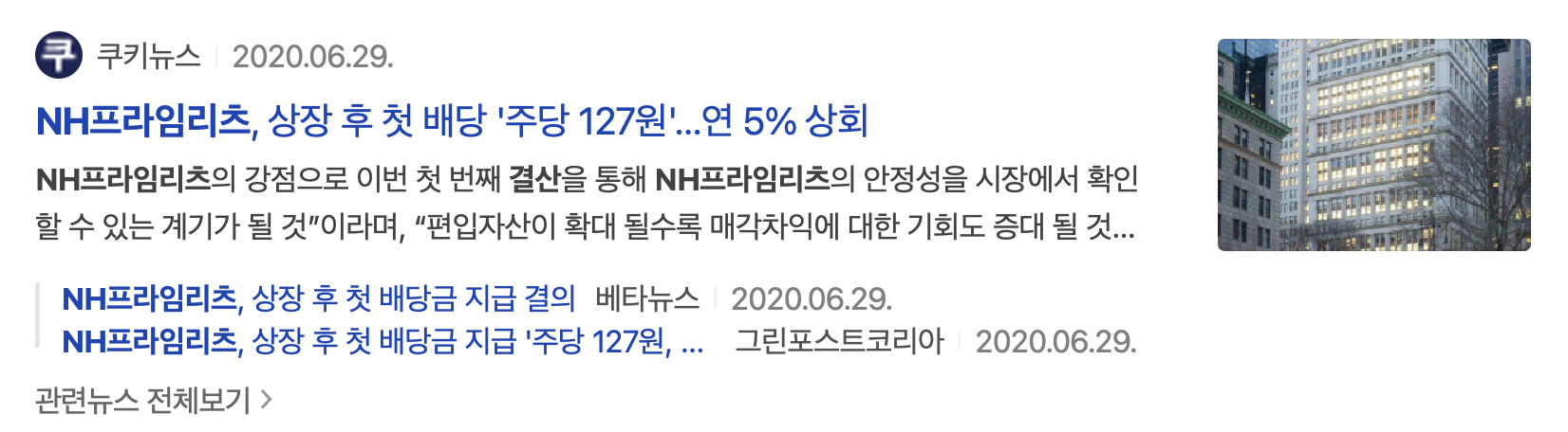지금까지 간단하게 'NH프라임리츠' 에 대해서 알아보았습니다. '리츠' 투자가 처음이어서 조금씩 공부하면서, 투자를 해야 할 것 같습니다.
