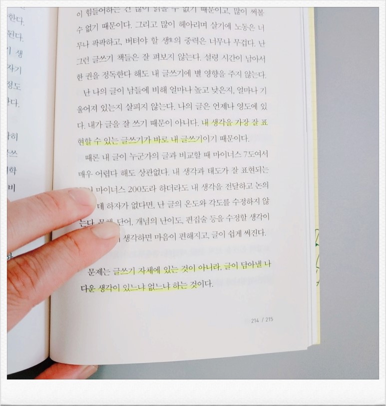 [문제는 글쓰기 자체에 있는 것이 아니라, 글이 담아낼 나다운 생각이 있느냐 없느냐 하는 것이다.]