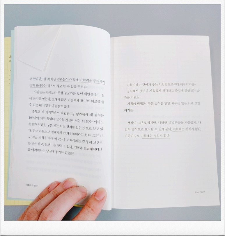 실천함으로써 어제보다 발전된 「차이의 힘」 으로 한 발자국 전진할 수 있도록 「기획자의 습관」 을 배울 수 있는 책입니다.