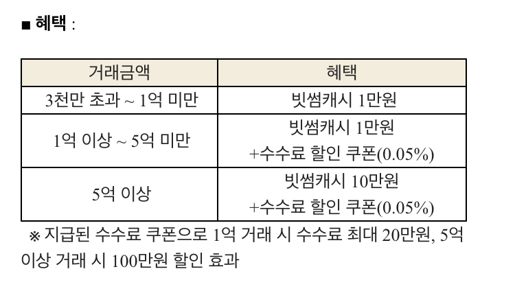 2) 거래 수수료 무료쿠폰 : 거래금액 3,000만 원 한도