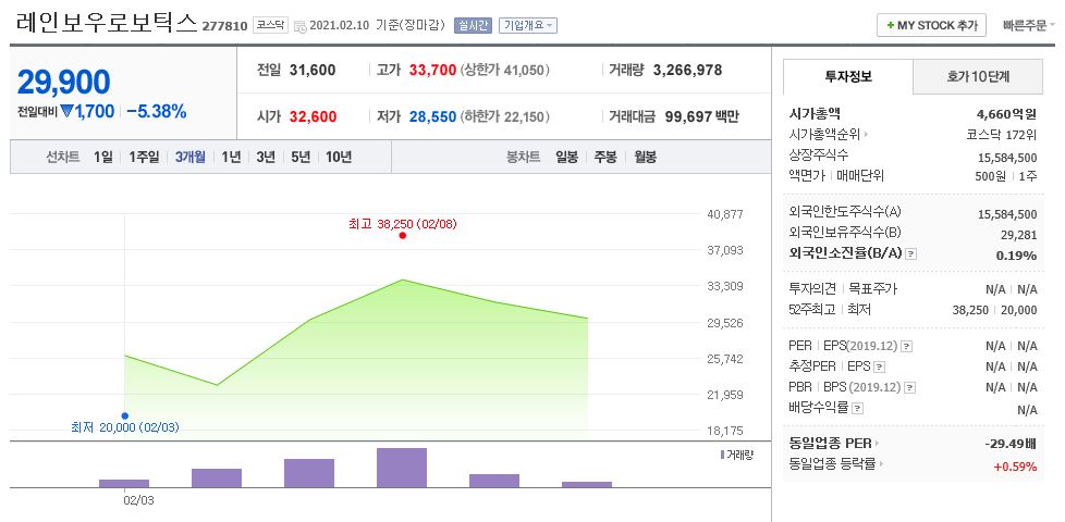 (*지난 1월 공모주 중 하나인 '레인보우로보틱스'의 경우도 영업적자 등 재무 현황은 좋지 않았으나, 높은 기술력 등으로 인해 시장에서 많은 관심을 받고 있습니다. / 공모가 : 11,000원, 21. 2. 10. 종가 29,900원 / 최고가 38,250원)