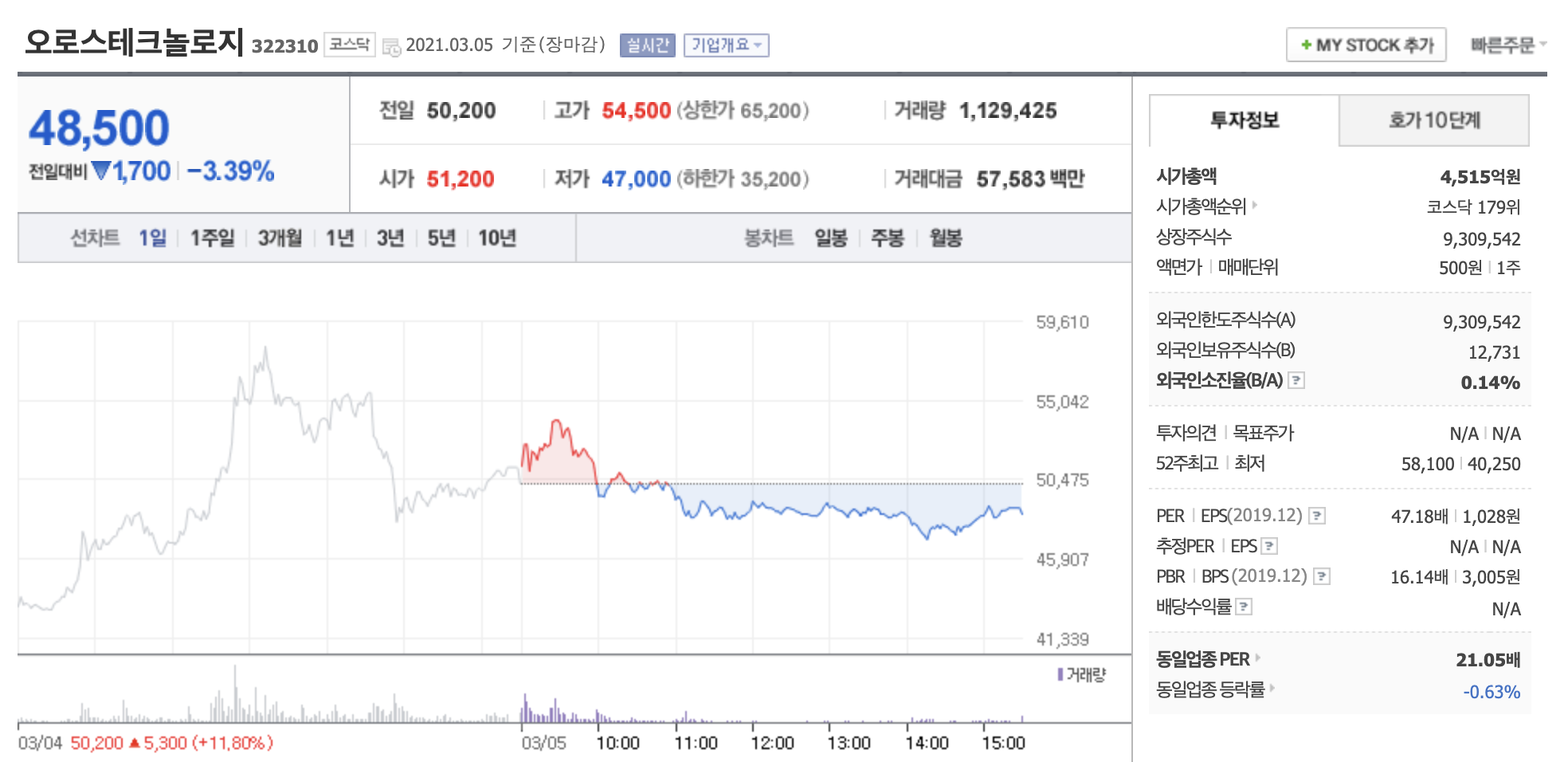 *오로스테크놀로지 역시 상장 당일 매도했는데, 1시간 정도만 더 기다렸으면 상장 당일 최고가인 54,600원에 매도 가능했겠지만, 그래도 적절한 가격에 잘 매도한 것 같습니다.