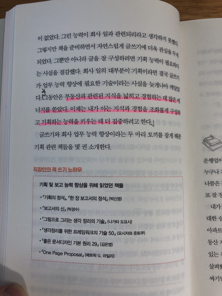 책을 쓰고 싶어하는 직장인에게 업무 이메일을 주고받는 것과 (직장에서) 손쉽게 접할 수 있는 ‘제안서’의 좋은 문구를 보는 것, 잦은 회의와 미팅에서 ‘회의록’을 작성하는 것과 같이 적극적이고 생산적으로 활용한다면, 글쓰기 실력을 키울 수 있다고 합니다.