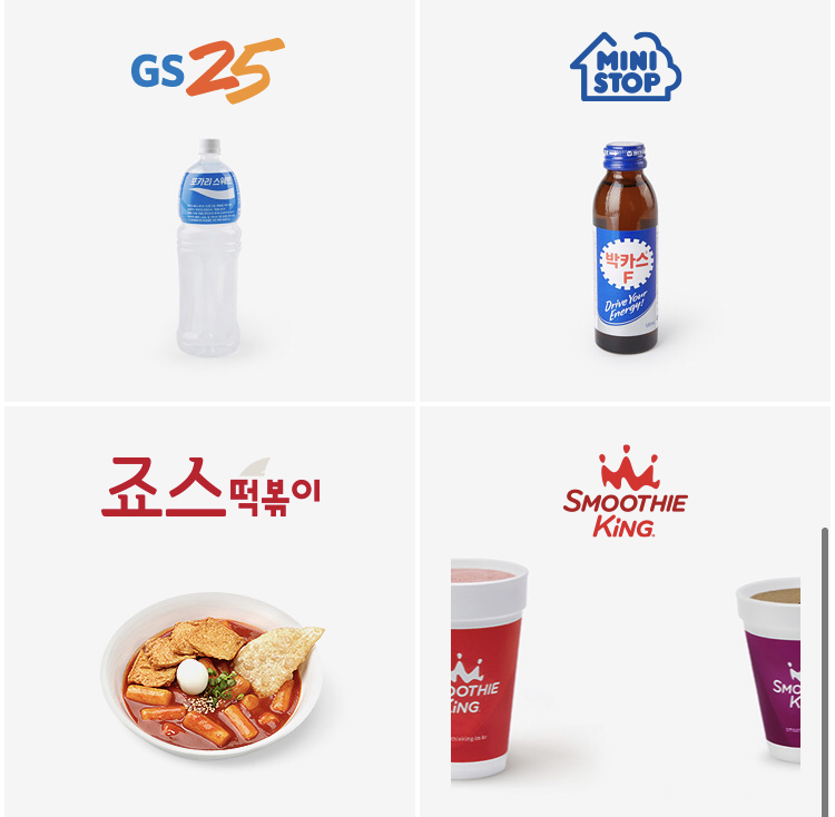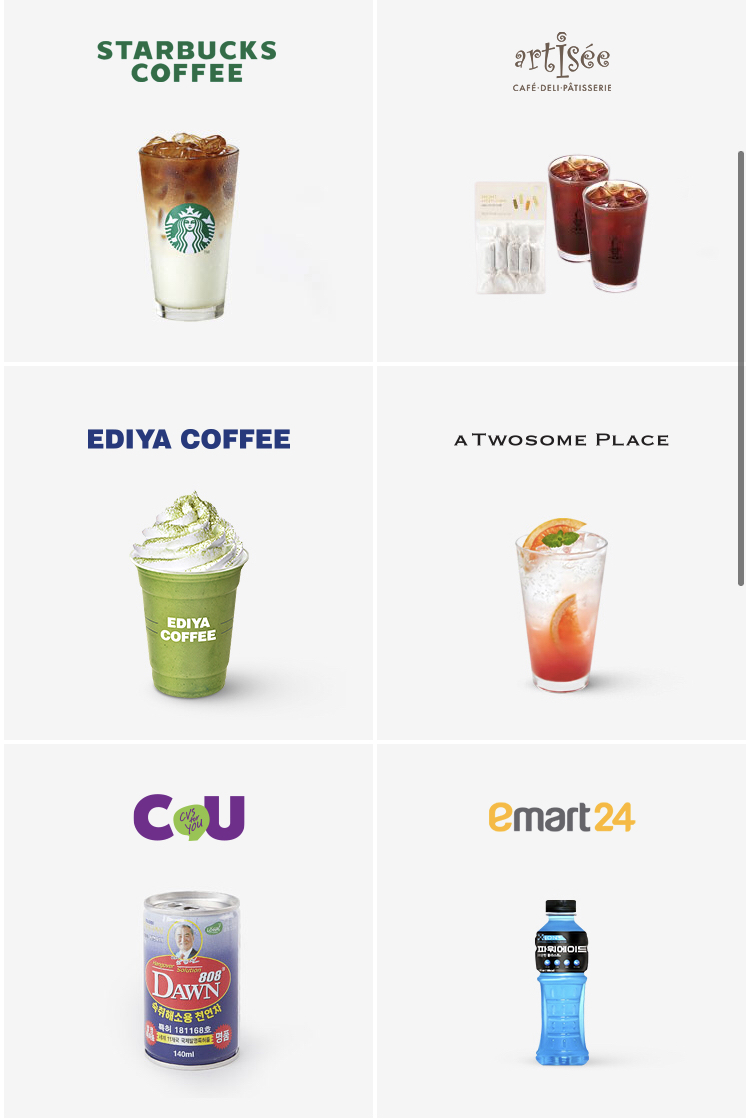 - 현재 기프트샵 내에는 스타벅스, 이디야, 투썸플레이스, 씨유 등의 물품의 기프티콘으로 교환 가능합니다.