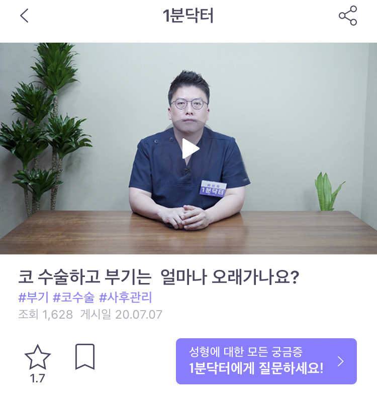 - 1분 닥터 동영상 시청시 500포인트를 지급받을 수 있습니다.