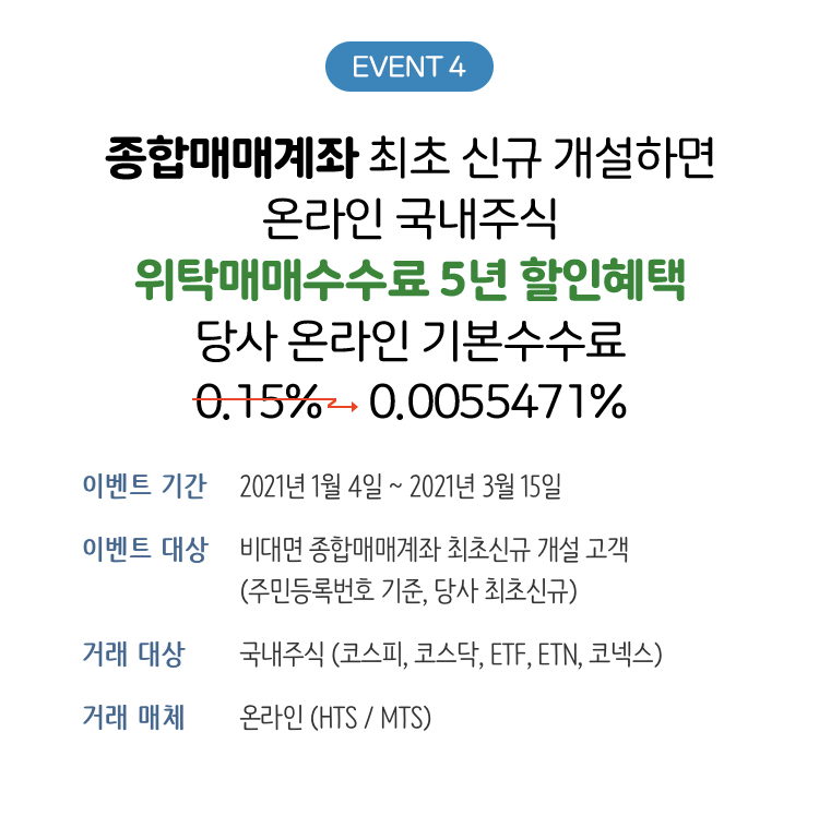 - 증권사 홈페이지에는 비대면 계좌 개설과 관련된 이벤트 안내는 없습니다.