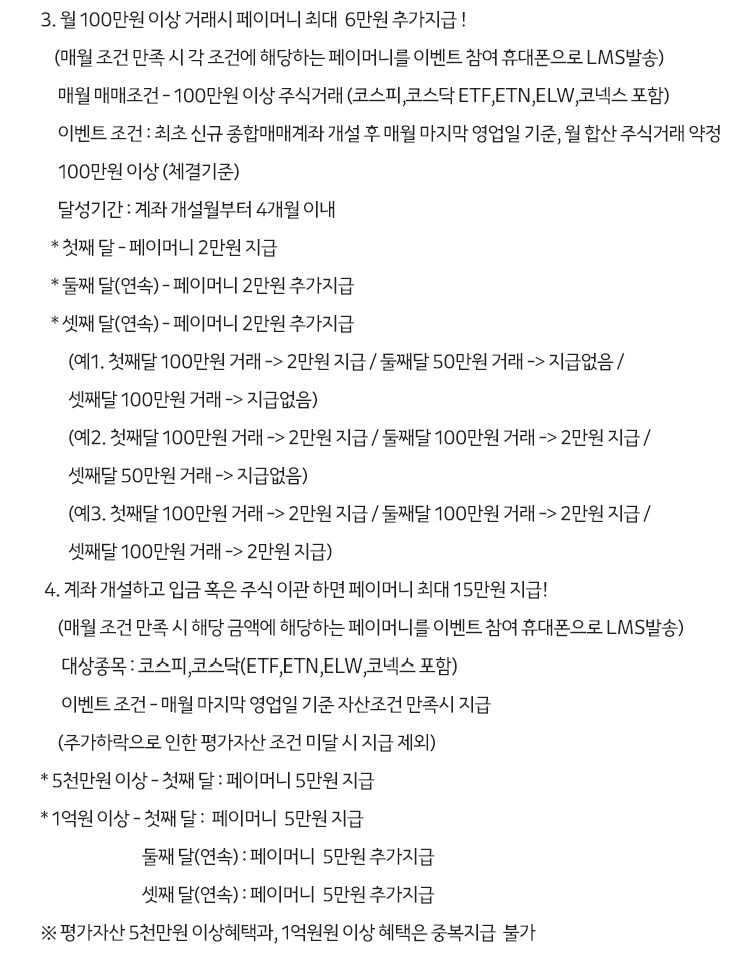 - 혜택 2) 월 100만 원 이상 주식 거래 -> 20,000 페이코 포인트 지급 (3개월 간)