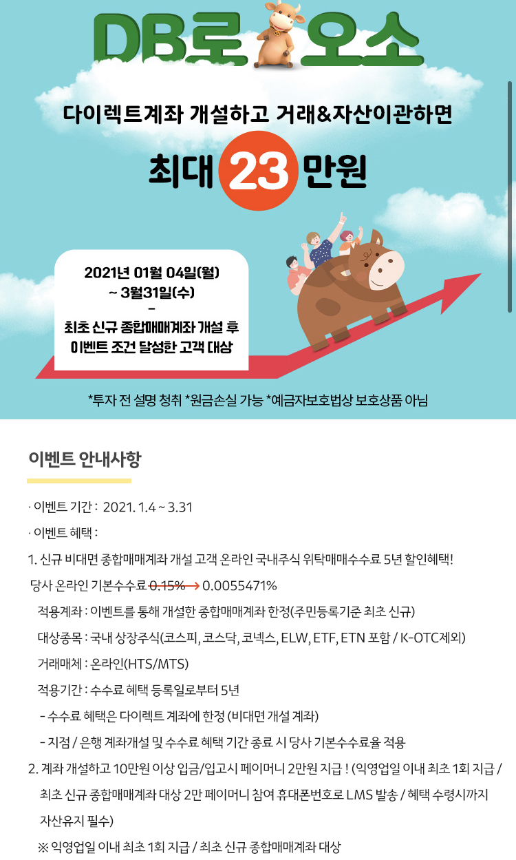 - 오늘은 ‘DB금융투자’‘DB금융투자’ 증권 비대면 계좌 개설 이벤트에 대해서 포스팅하려고 합니다.