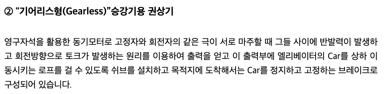 ⊙ 다만, '해성티피씨'에서 주력으로 생산하고 있는 'Geared'타입이며, 현재는 (품질이 안정화된) Gearless 권상기로 시장 전환기를 맞이하고 있다고 합니다.