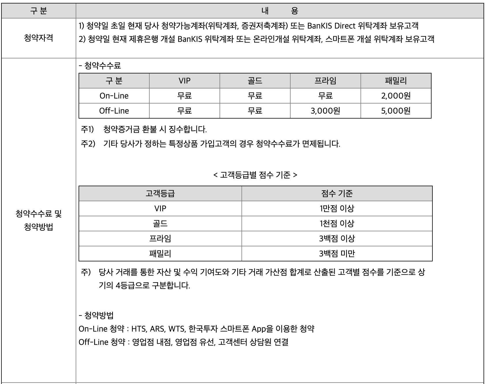 ⊙ (특별한 경우를 제외하고) 청약일 초일 현재 당사에 청약 가능 계좌가 있어야 합니다.