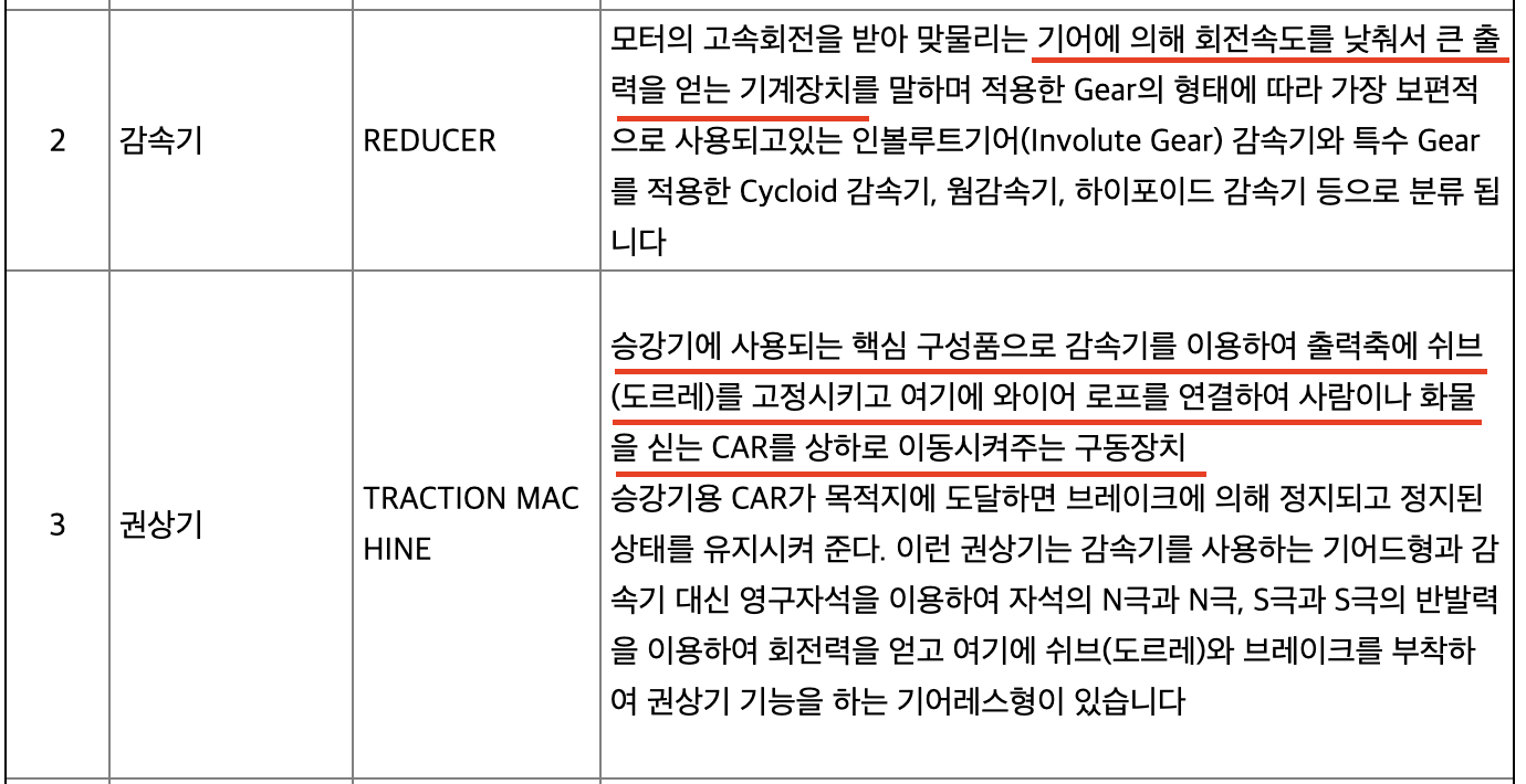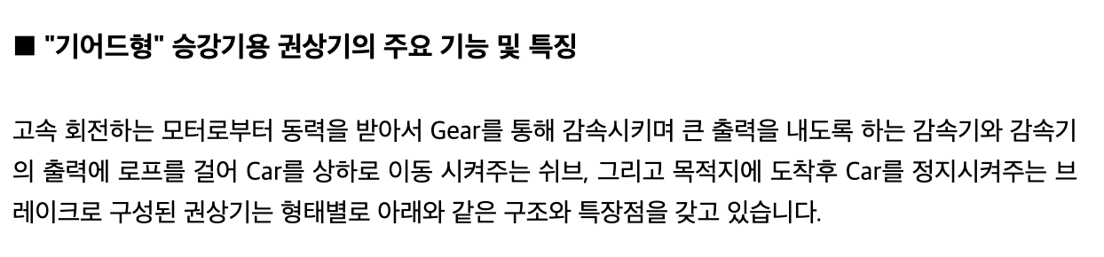 ⊙ '권상기', '감속기'거 다소 생소한 용어인데, 아래 사진과 용어 설명을 보면 어느 정도 이해하실 수 있을 것 같습니다.