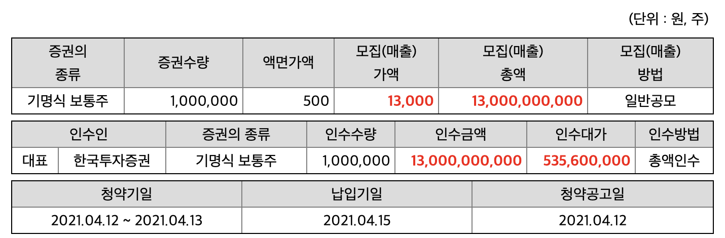 1. 청약기일 : 2021. 4. 12.(월) ~ 13.(화)