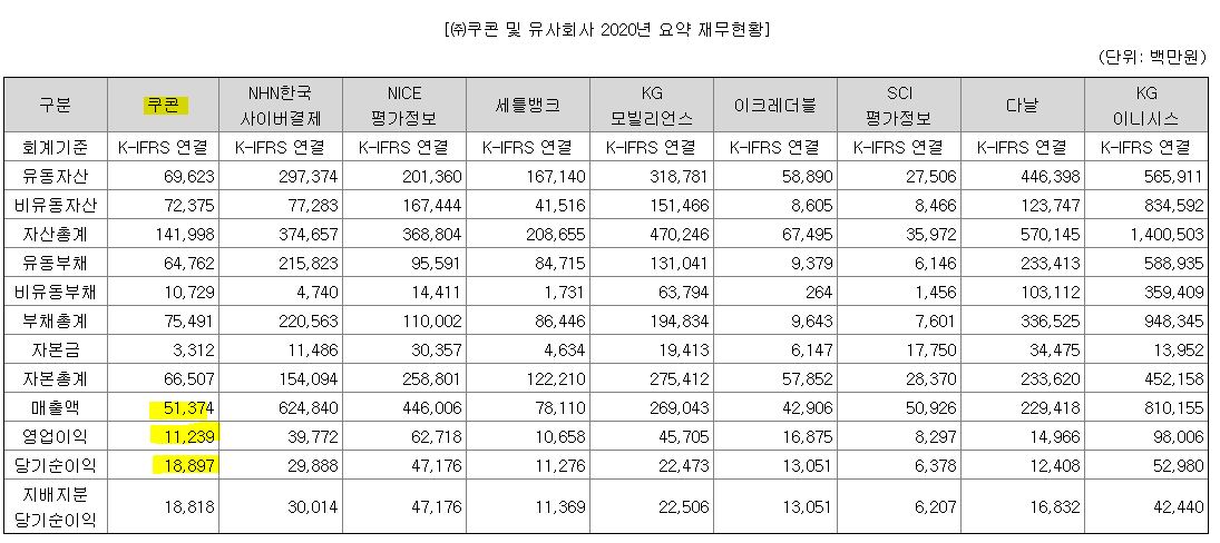 *(재무제표를 잘 알지 못하는 초보투자자이지만,) 저는 재무실적을 볼 때 영업적자 여부, 업종 평균 대비 부채비율, 이자보상비율 등을 눈여겨보는데, ‘쿠콘’의 경우 이자보상배율이 73.83배로 양호한 재무 실적을 보여주고 있는 것 같습니다.
