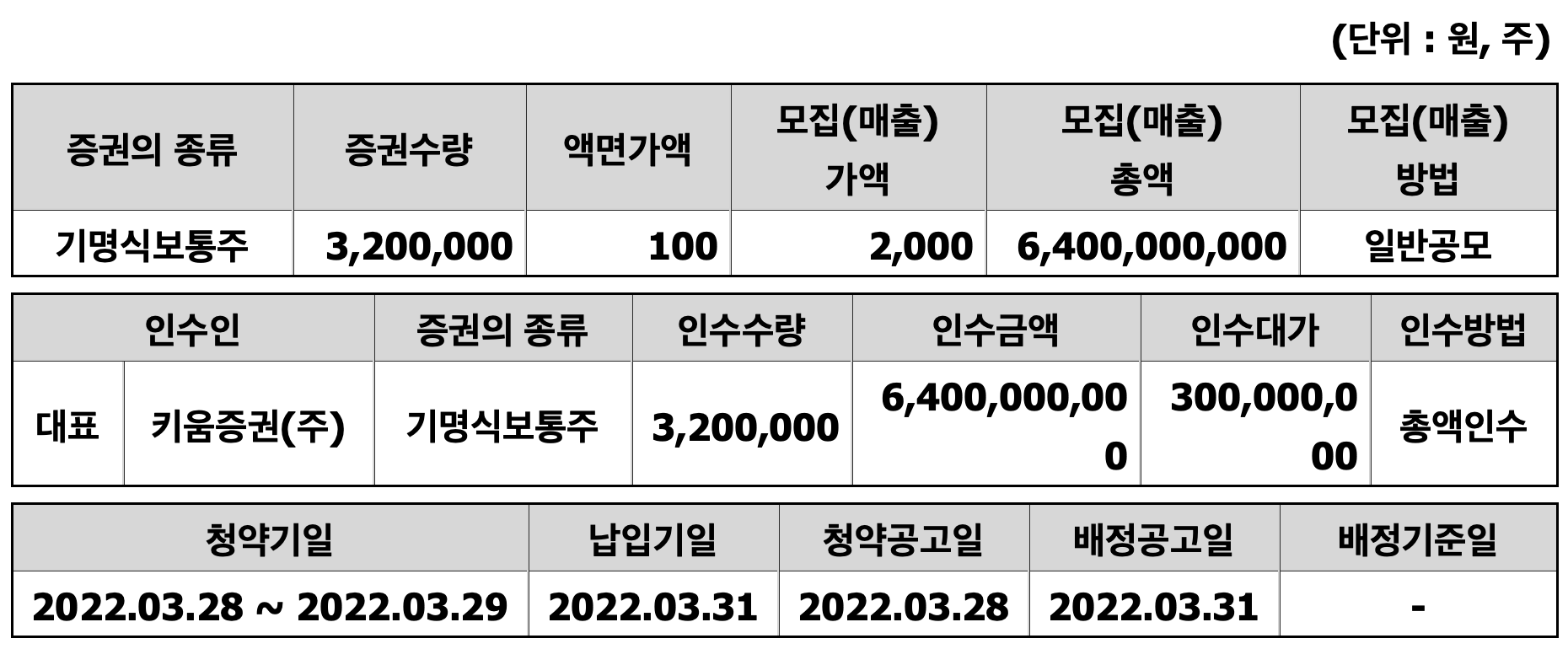 키움제6호스팩 공모 개요를 전자공시 시스템에서 찾아보면, 위 표와 같은데 일반적인 타 청약 종목과 달리 1주당 2,000원으로 공모가가 확정되며, (인수 합병이 되지 않으면) 타 종목보다 주가 상승폭은 크지 않지만 특별한 경우가 아니면 2,000원 이하로 주가가 떨어지지 않기 때문에 상당히 안정적인 투자처가 되는 것 같습니다.
