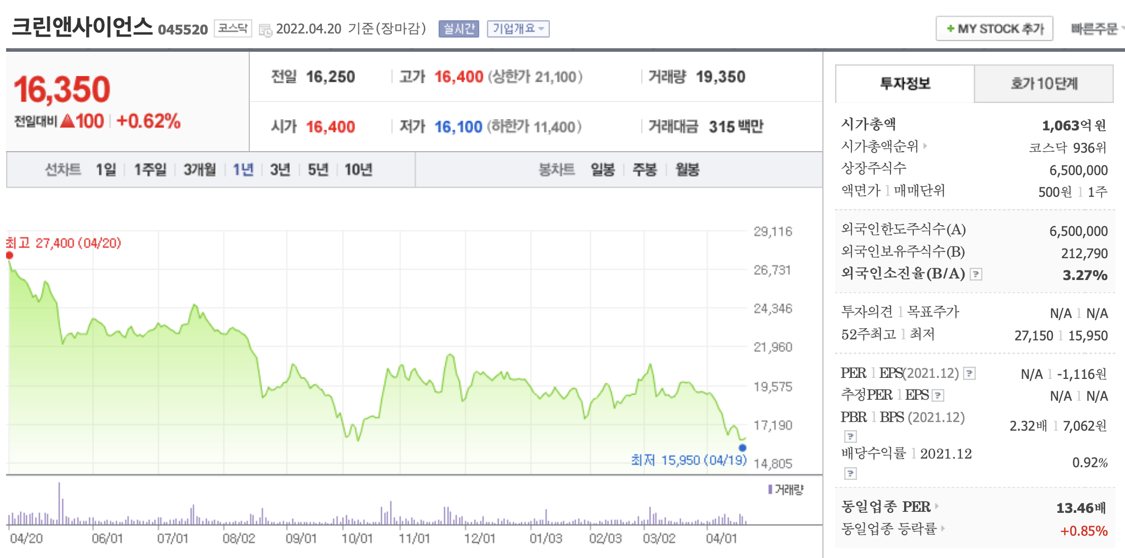 2. 저도 개인적으로 미세먼지가 이슈화되고, 코로나로 인해 마스크나 공기청정기에 대한 관심이 높아지던 시점에 '크린앤사이언스'에 관심을 갖게 되어 조금씩 매수하게 되었습니다.