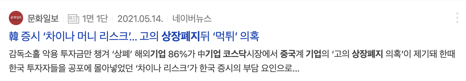 3. 위 기사와 같이, 중국계 기업이 예전부터 상장폐지된 좋지 않은 사례가 많아서 인지, '미투젠' 역시 동종업종 대비 월등한 영업이익률을 보여주고 있음에도 불구하고, 시장에서 낮은 평가(PER 기준)를 받고 있는 것 같다는 생각도 드는 것 같습니다.