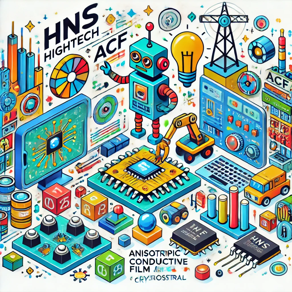 에이치엔에스하이텍은 1995년에 설립된 전자 부품 제조업체로, 주로 이방성전도필름(ACF)과 수정 진동기 등을 전문으로 하고 있습니다. ACF는 디스플레이 패널과 회로를 연결하는 핵심 소재로, TV와 스마트폰 등 다양한 전자 제품에 사용됩니다.