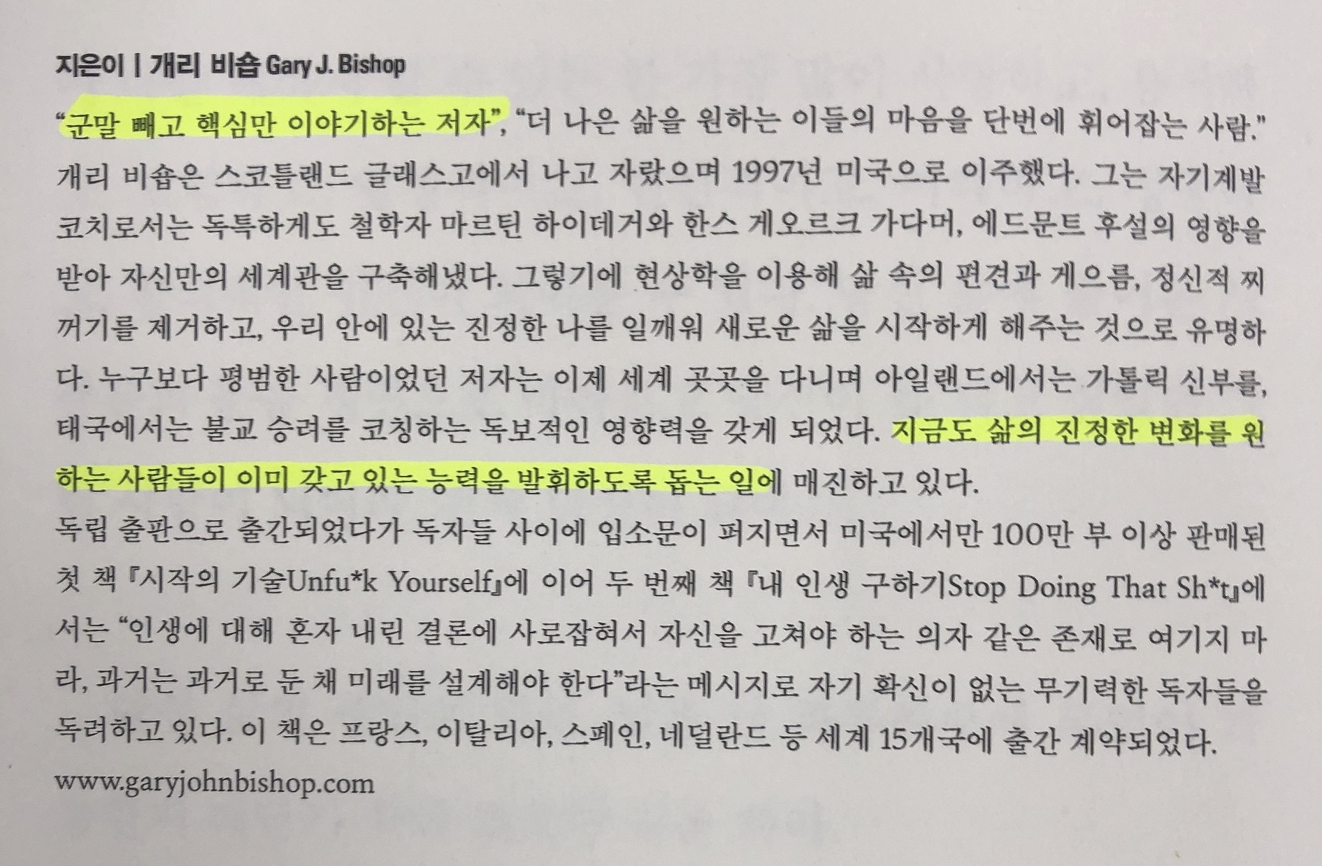 그리고 이 책은 뭔가 조금은 색다른(평범하지 않은) '자기계발' 서적을 읽고 싶은 분들에게 조심스럽게 추천해봅니다.