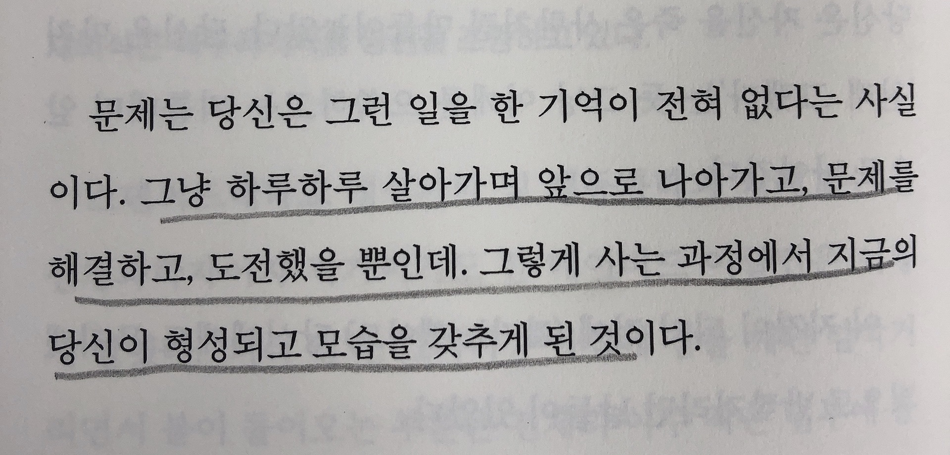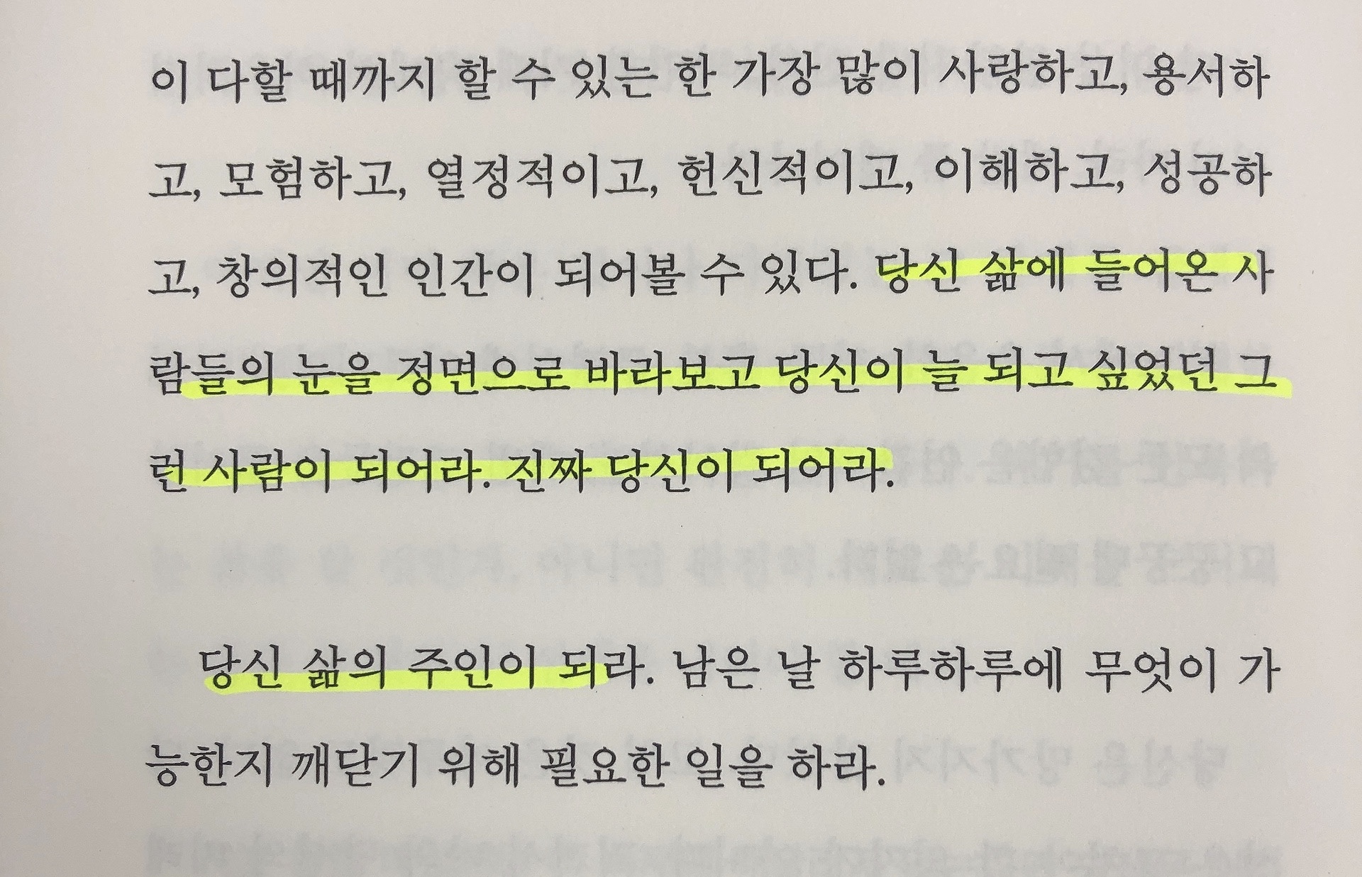 그래도 ‘저자가 말하는 것’ 그리고 제가 ‘책을 읽고 느낀 점’을 단 하나의 문장으로 표현한다면, 이렇게 말할 수 있지 않을까요?