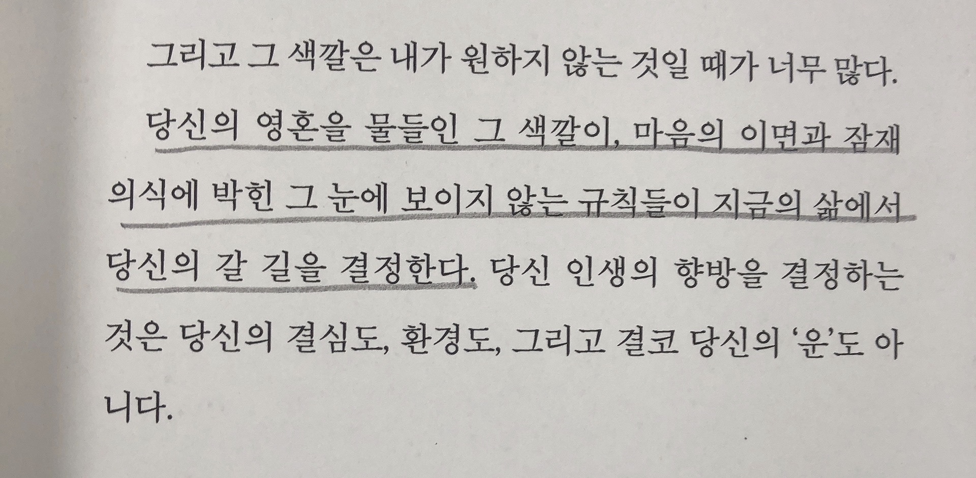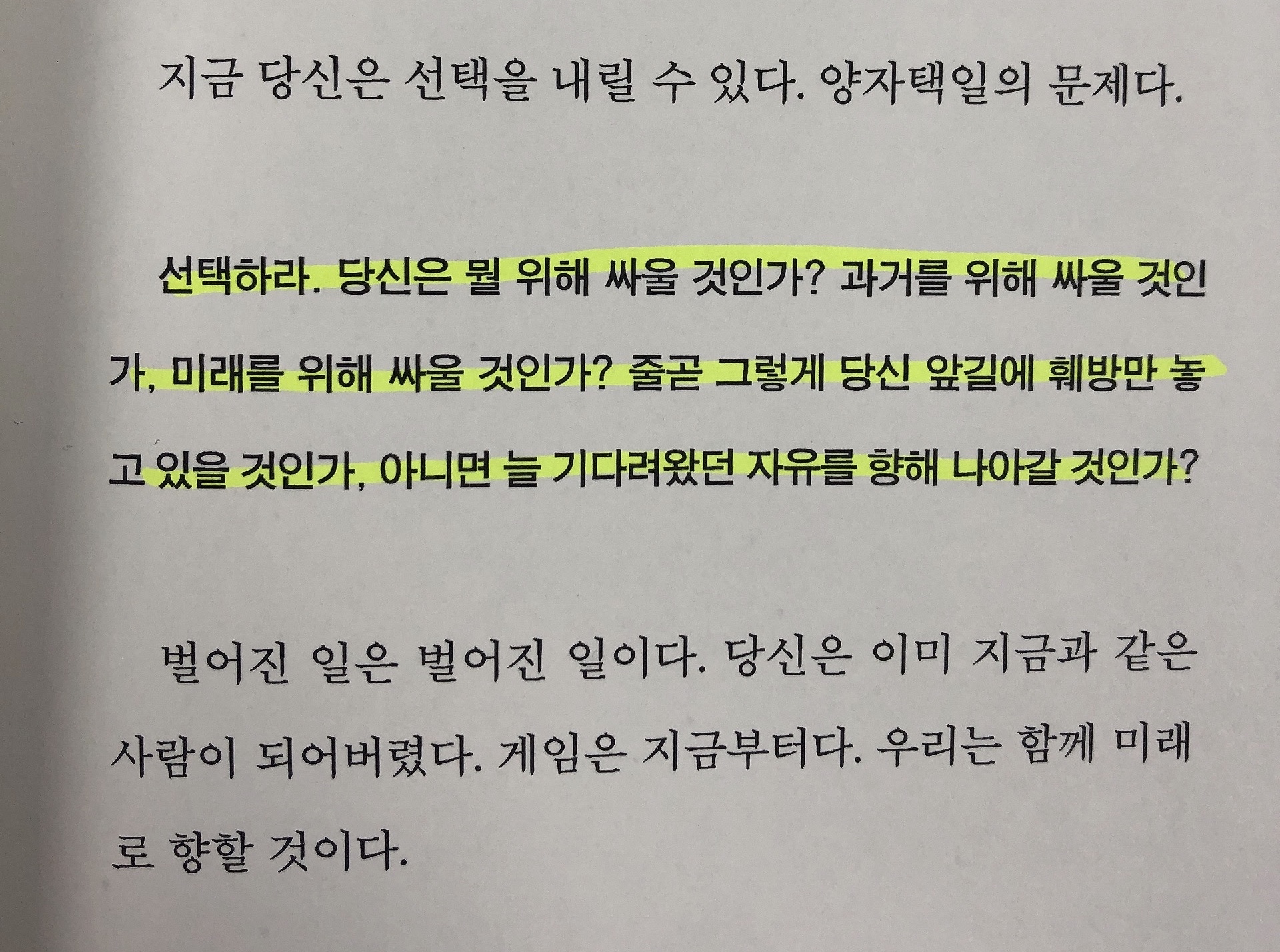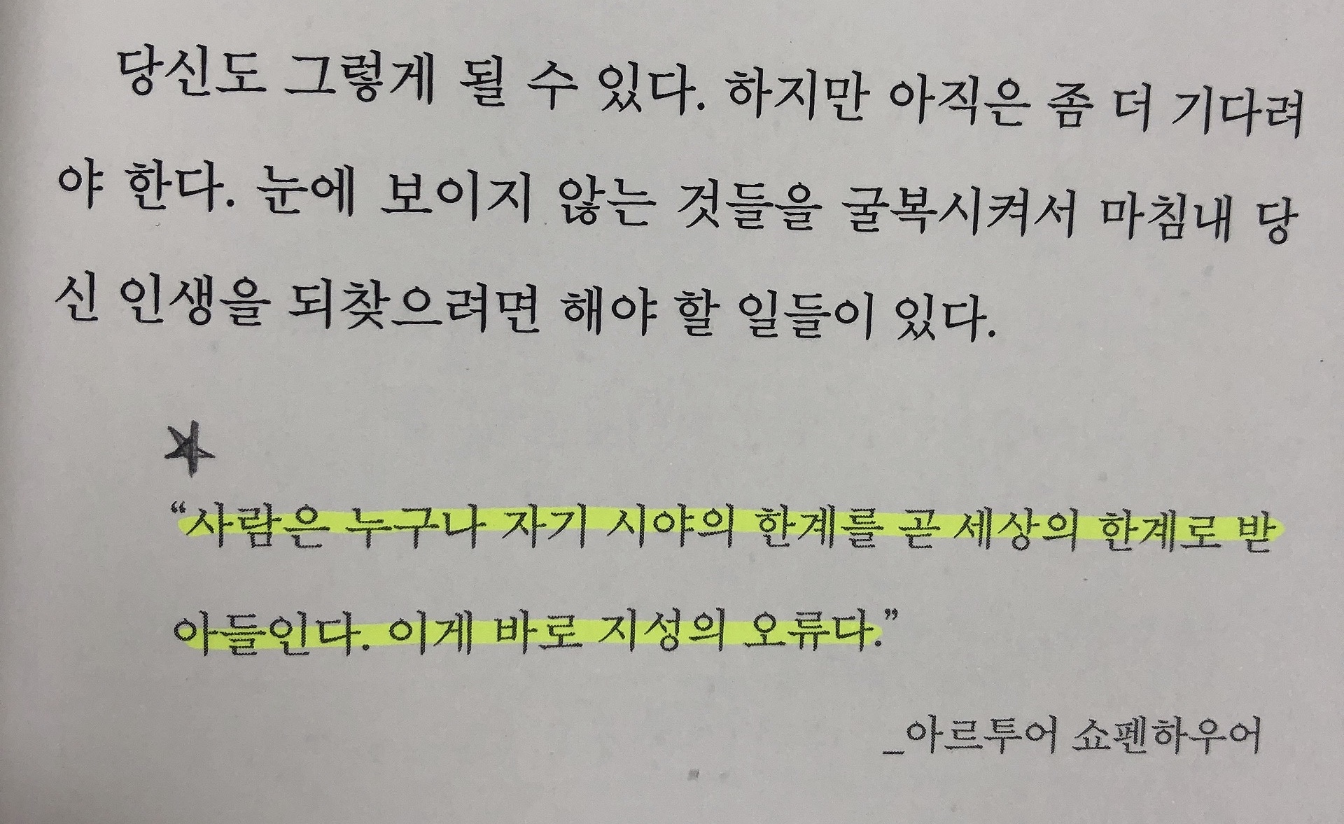 그래도 ‘저자가 말하는 것’ 그리고 제가 ‘책을 읽고 느낀 점’을 단 하나의 문장으로 표현한다면, 이렇게 말할 수 있지 않을까요?