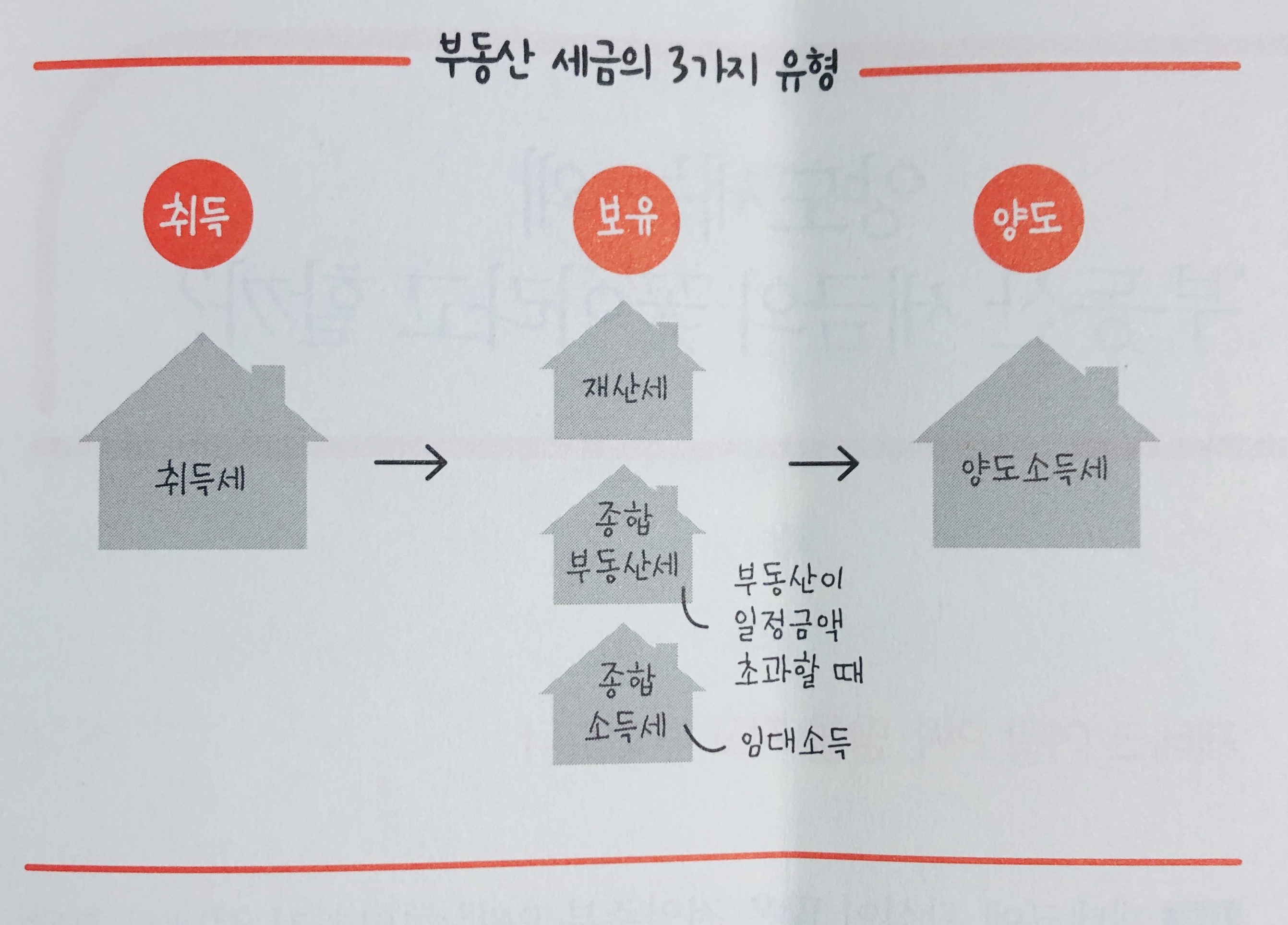 먼저, 이 책을 읽게되면 부동산 세금의 (3가지) 종류를 이해할 수 있습니다. <1단계>