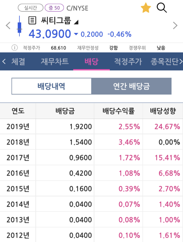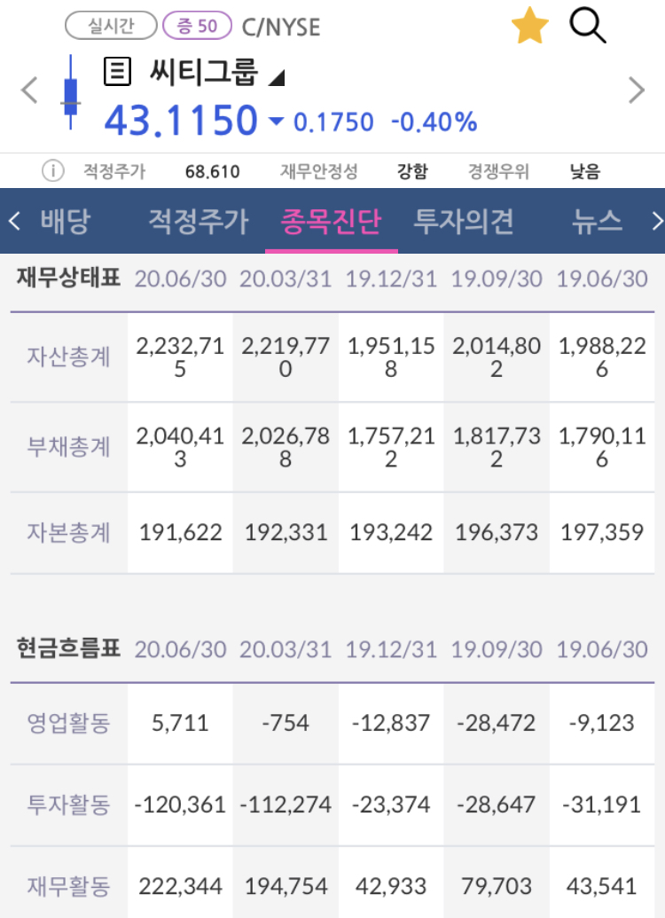 # ‘씨티그룹' 재무현황 (*관련 기사 첨부)