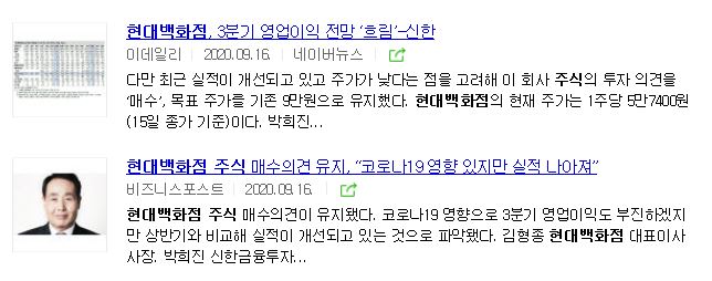 ◎ 그래도 현대백화점은 아래 언론보도와 같이 유통 빅3(롯데쇼핑, 신세계, 현대백화점) 중에서 백화점 사업 분야에서의 괜찮은 성적을 거두고, 사업 영역이 다각화되어 있어, 지난 분기에 나름 실적을 선방했다고 합니다.