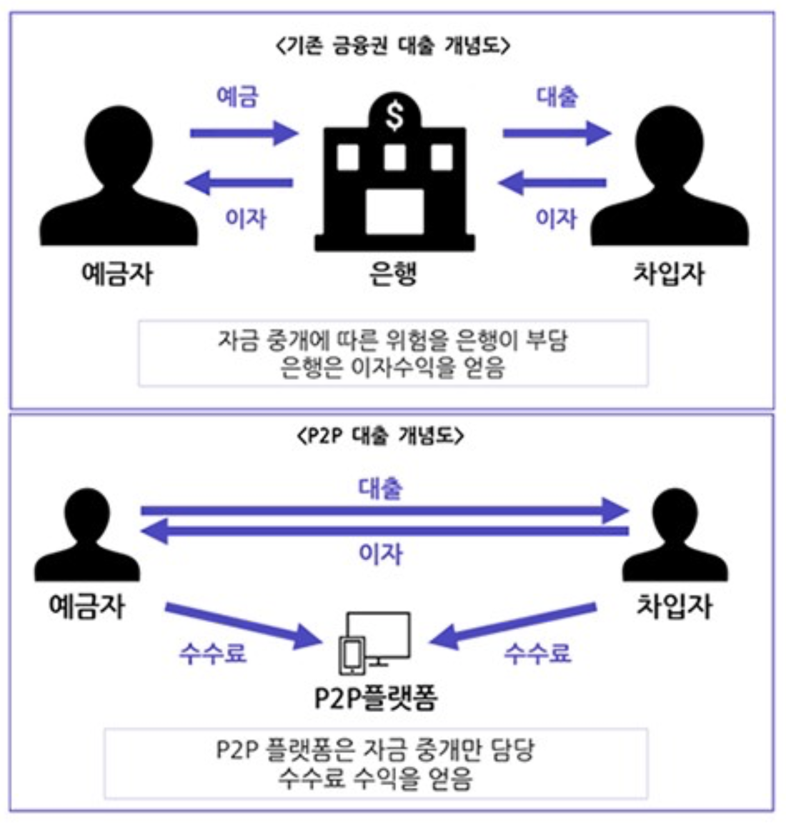 P2P 대출은 일종의 크라우드펀딩이다. 은행과 같은 금융기관을 거치지 않고 온라인 플랫폼을 통해 개인끼리 자금을 빌려주고 돌려받는다. 웹사이트나 사회관계망 서비스(SNS)를 활용해 대출이 이뤄진다는 점에서 ‘소셜론’(Social loan)으로 불리기도 한다.