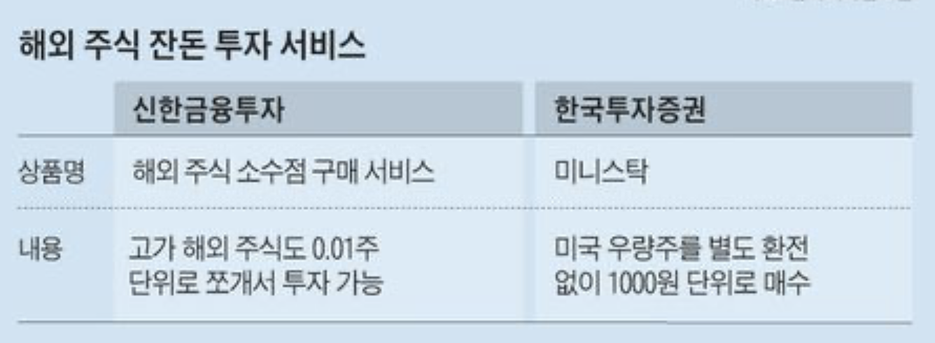 ⊙ 저는 신한금융투자와 한국투자증권 모두 해외 주식 잔돈 투자 서비스를 이용해보았는데, 각각 장, 단점이 있는 것 같은데, 다음에 다룰 기회가 있으면 살짝 적어볼까 합니다.