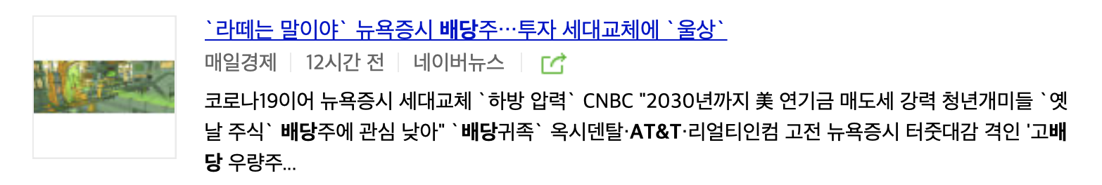 2. 미국 `베이비부머` 세대의 은퇴가 가까워지면서 이들이 적극 매수하던 `고배당 우량주`가 외면을 받고, 젊은 세대가 선호하는 기술주들이 힘을 받고 있다고 합니다. 이로 인해 배당주 등이 서서히 풀리면서 주가 하방 압력이 높아질 수 있다고 합니다.