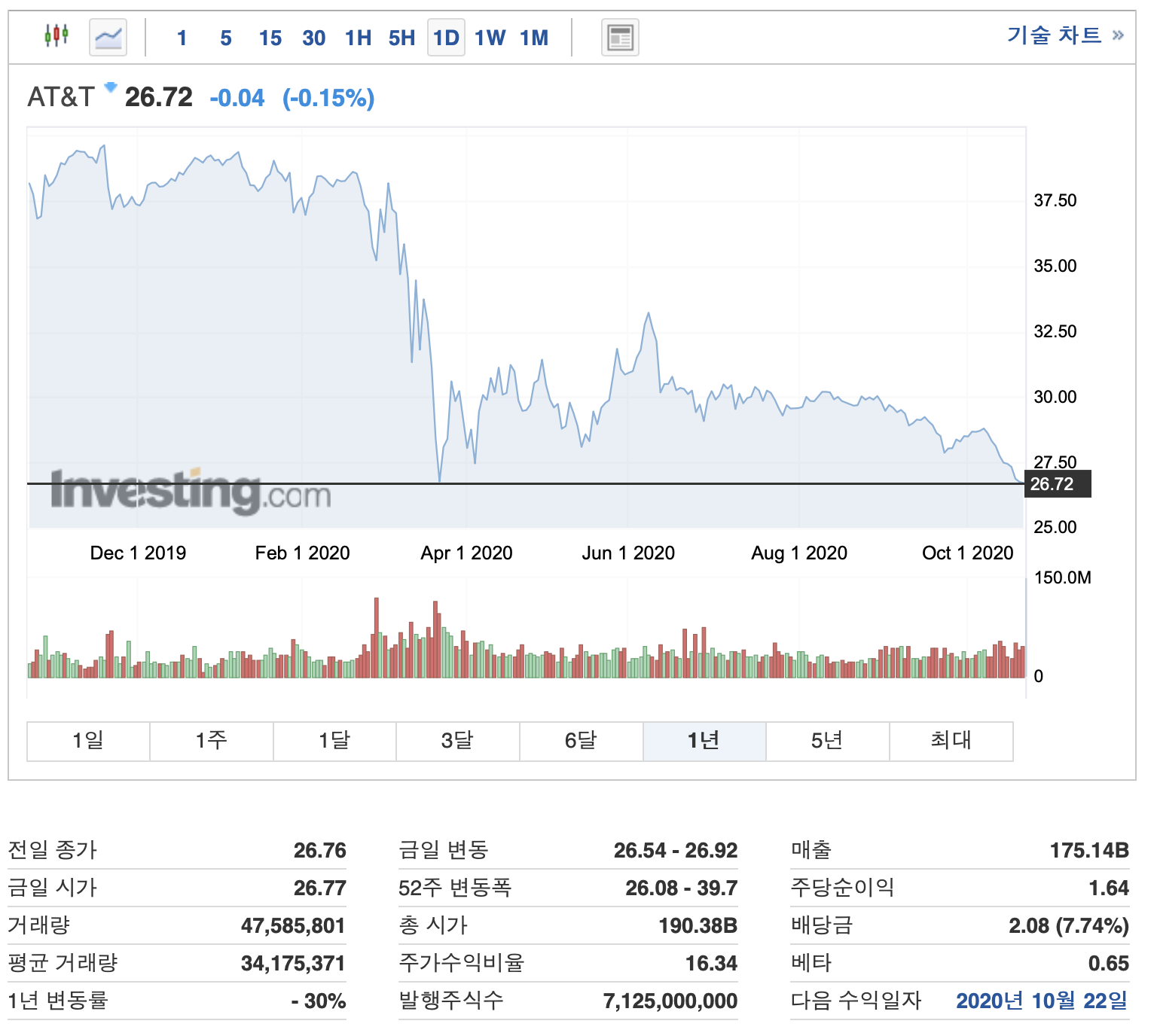 2020/09/06 - [경제를 공부합니다./미국주식 투자] - [미국주식 투자] 'AT&T' 매수