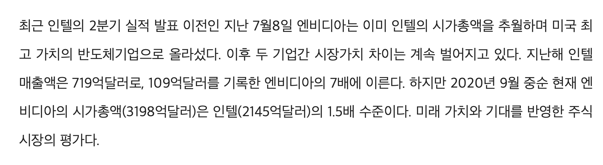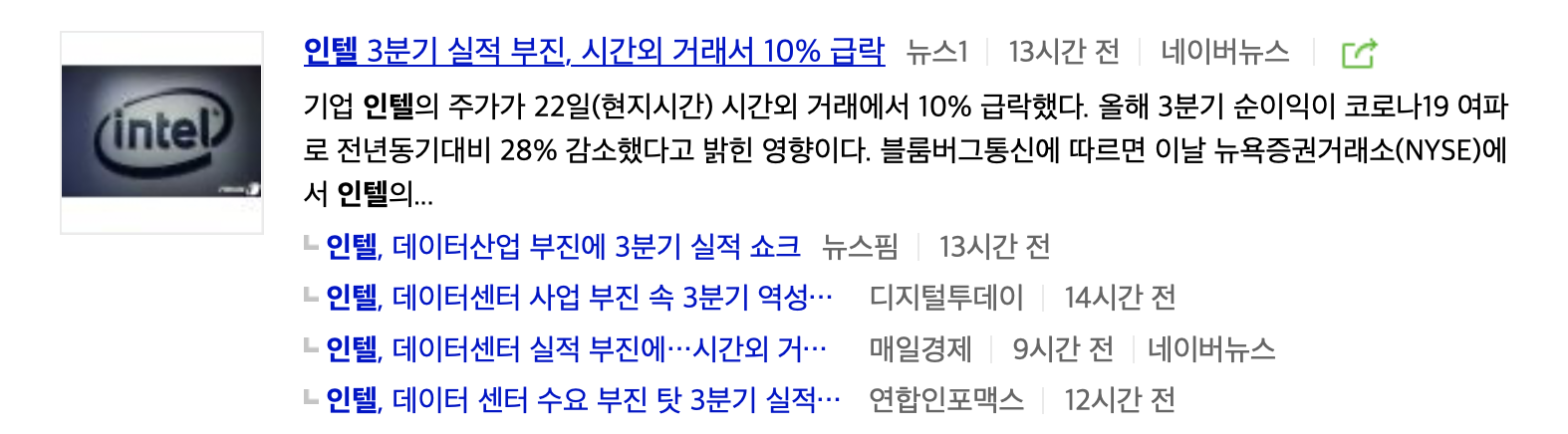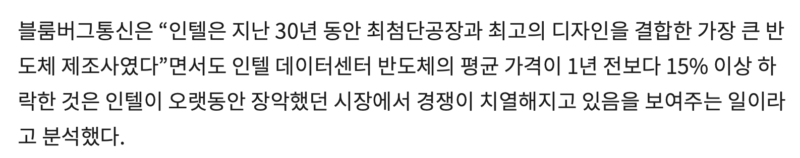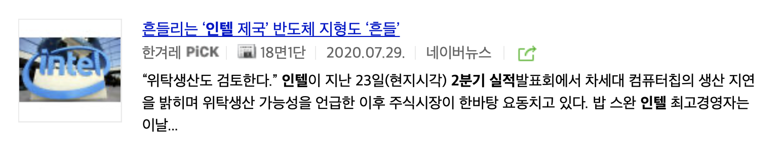 2. 몇 개의 기사만 살펴봐도 '인텔'의 위상이 많이 흔들리고 있음을 알 수 있습니다.