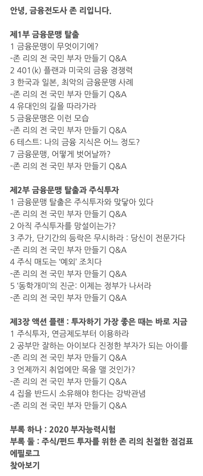 ⊙ '존리의 금융문맹 탈출'은 '존리의 부자되기 습관'보다는 내용이 체계적이고, 서술 순서가 깔끔 하게 정열 되고 정돈되어 있다는 느낌(?)이 들었습니다.