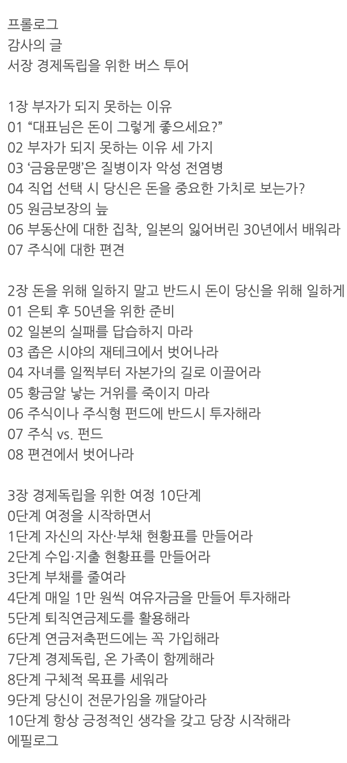 ⊙ 반복되거나, 책 분량을 채우기 위한 내용(*2020년 부자능력시험)이 다수 포함되어 있는 것 같다.