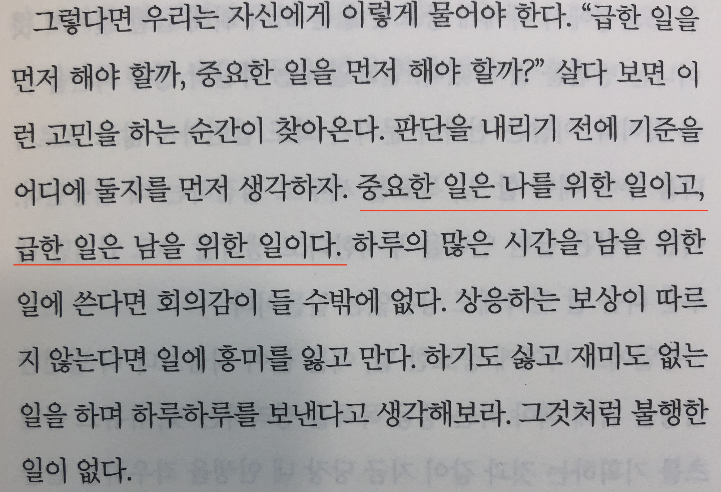 [중요한 일은 나를 위한 일이고, 급한 일은 남을 위한 일이다.]