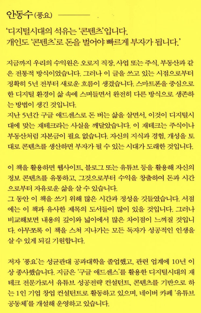 # 구글 애드센스로 돈 벌기 구글 애드센스로 돈 벌기 / 안동수(풍요로움) 저 / 아틀라스북스 출판 / 2016년 11월 15일 # 저자 소개 # 책을 읽은 이유 저는 몇 달 전 블로그를 개설한 후 틈틈히 독서 기