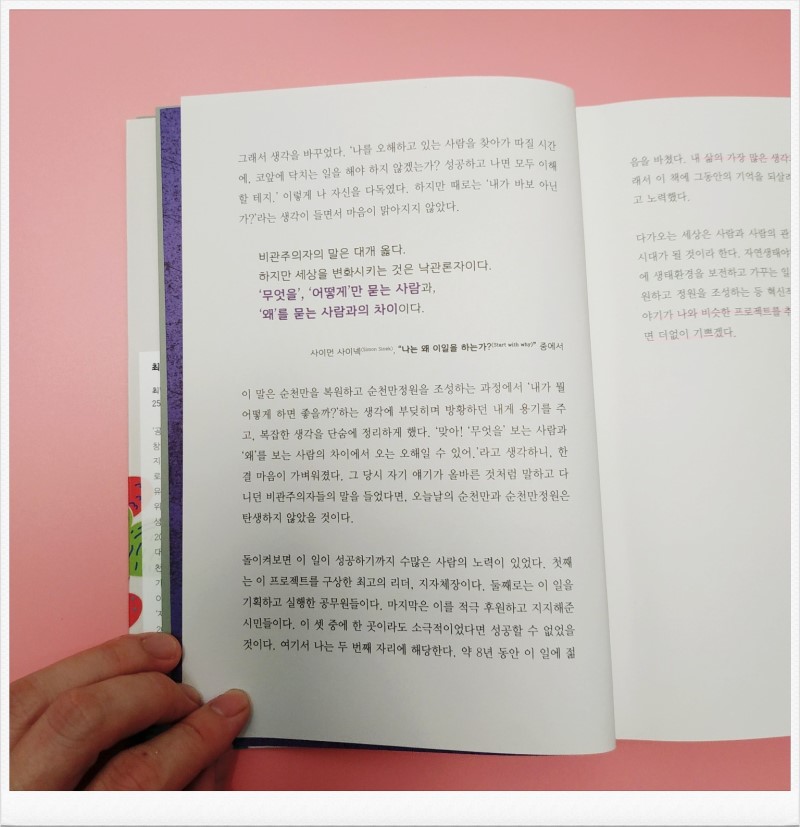 하지만, 그의 이야기를 읽어가면서, 그의 열정과 노력의 결과물인 기적의 도서관에서 책을 읽어보고 싶고, 순천만에서 스카이큐브를 타보고 싶어졌습니다.