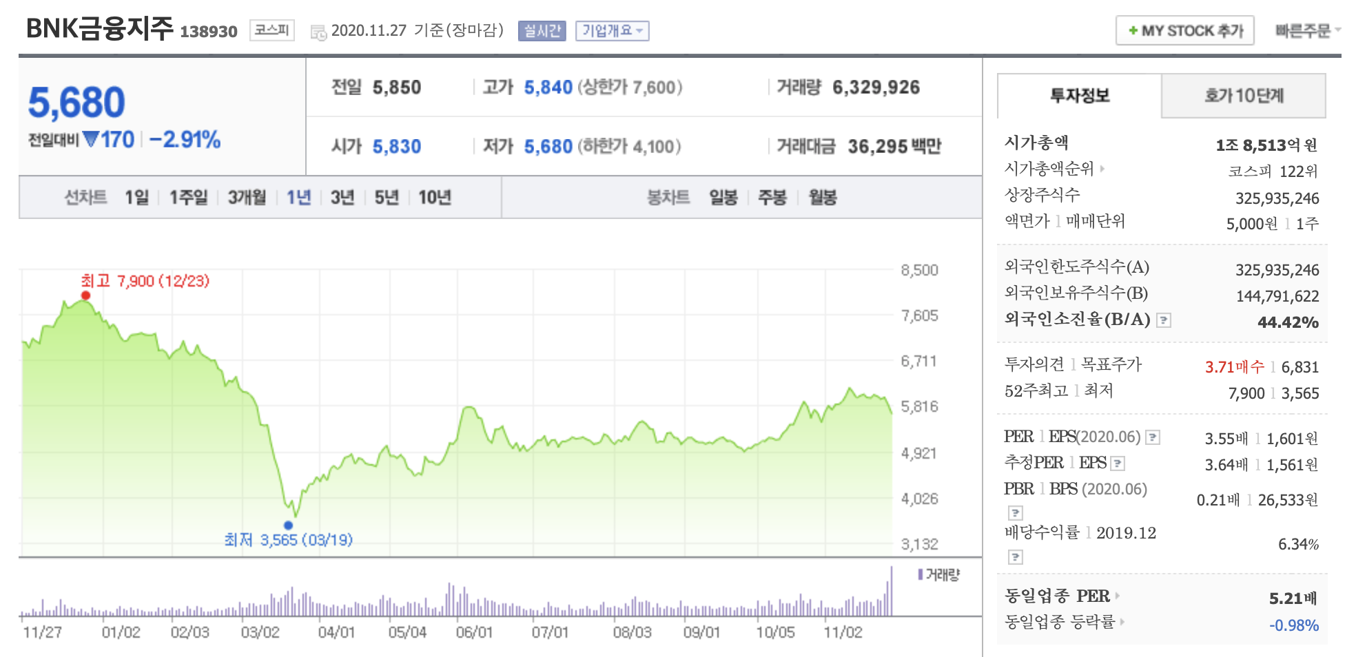 다른 ‘금융주’ 대비 코로나 19로 인해서 떨어진 주가 회복이 더딘 종목 ‘BNK금융지주’ 가 눈에 띄었고 관련 기사와 자료를 살짝 살펴보았습니다. 그리고 저의 포트폴리오에 몇 주 담아보았습니다.