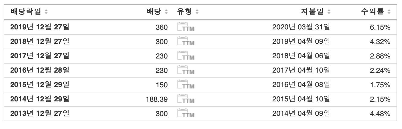 2. 2020년 배당금 지급(예상) (*네이버금융 참고)