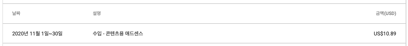 | [블로그] 블로그 수익 공개(구글 애드센스 수익 공개) (2) | 2020.11.03 |