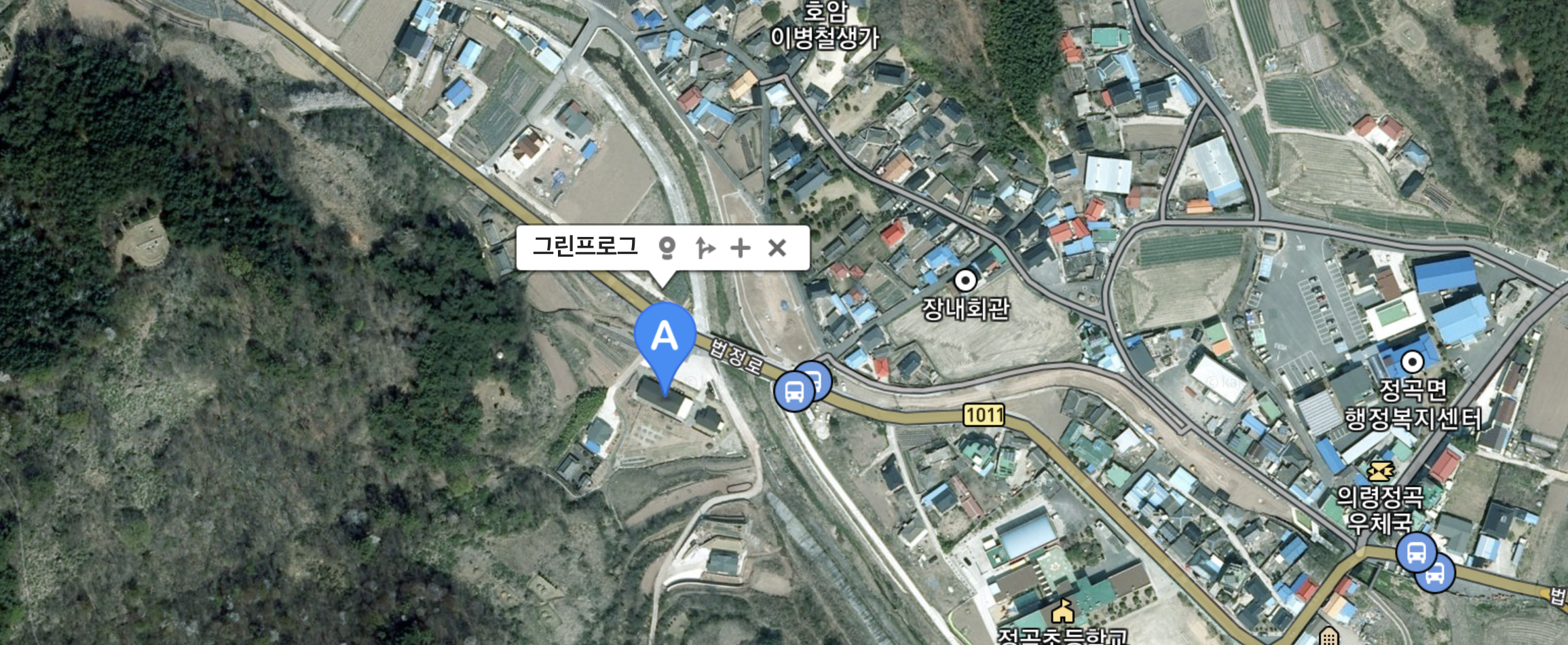 # 이번에 다녀온 카페는 ‘경남 의령군 정곡면’에 위치한 ‘그린프로그’입니다.