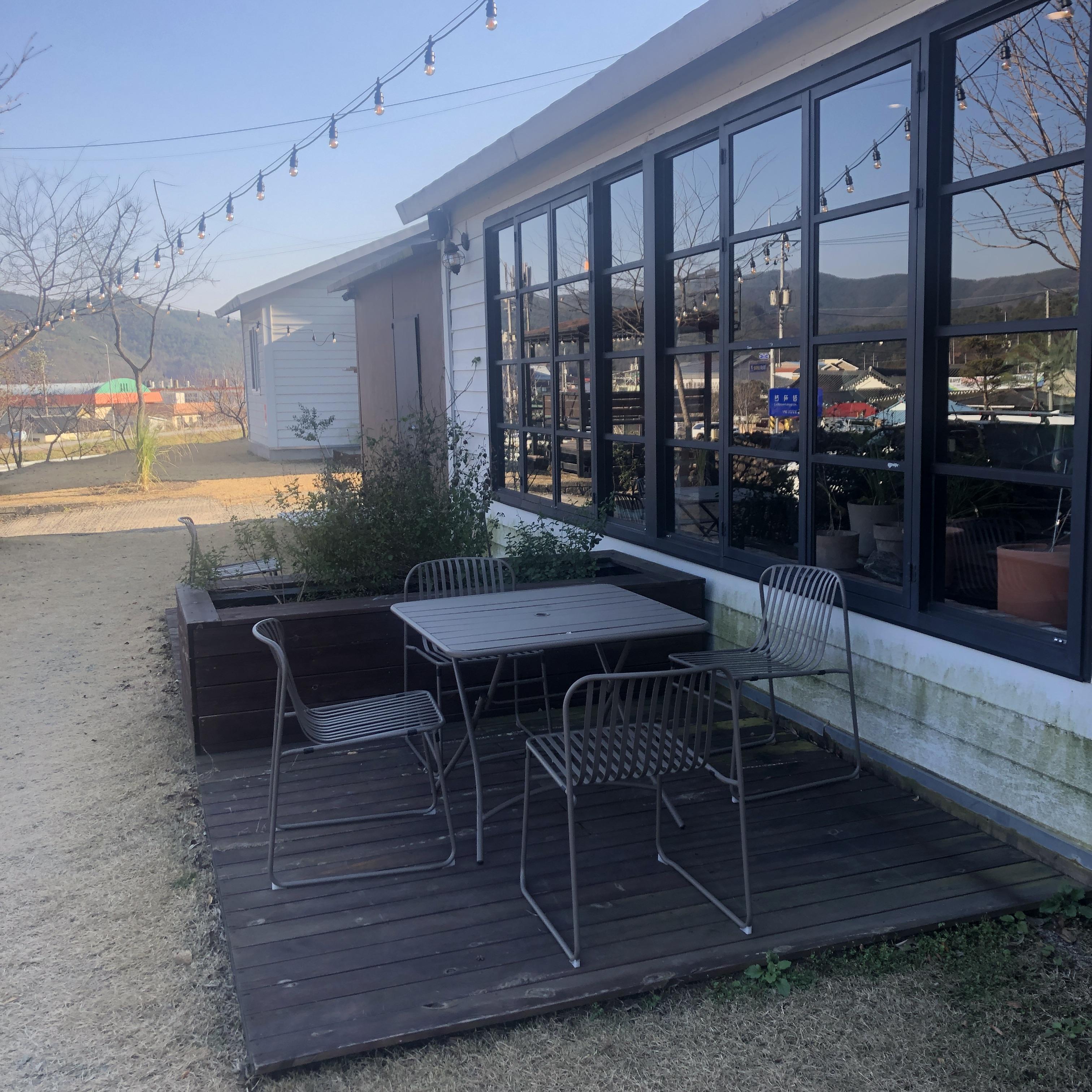 # 야외에서도 커피를 마실 수 있게 의자와 테이블이 놓여있었으나, 추워서 저희는 실내를 이용했습니다.