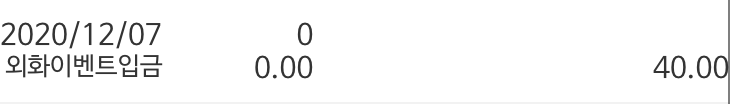 [2020. 12. 7. 외화이벤트 40$가 입금되었습니다.]