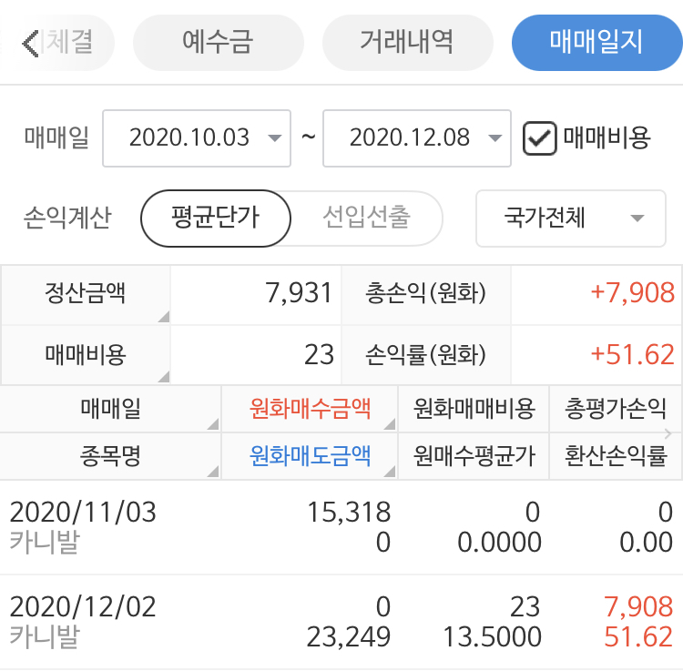 [2020. 12. 2. '카니발' 1주를 매도했습니다.]