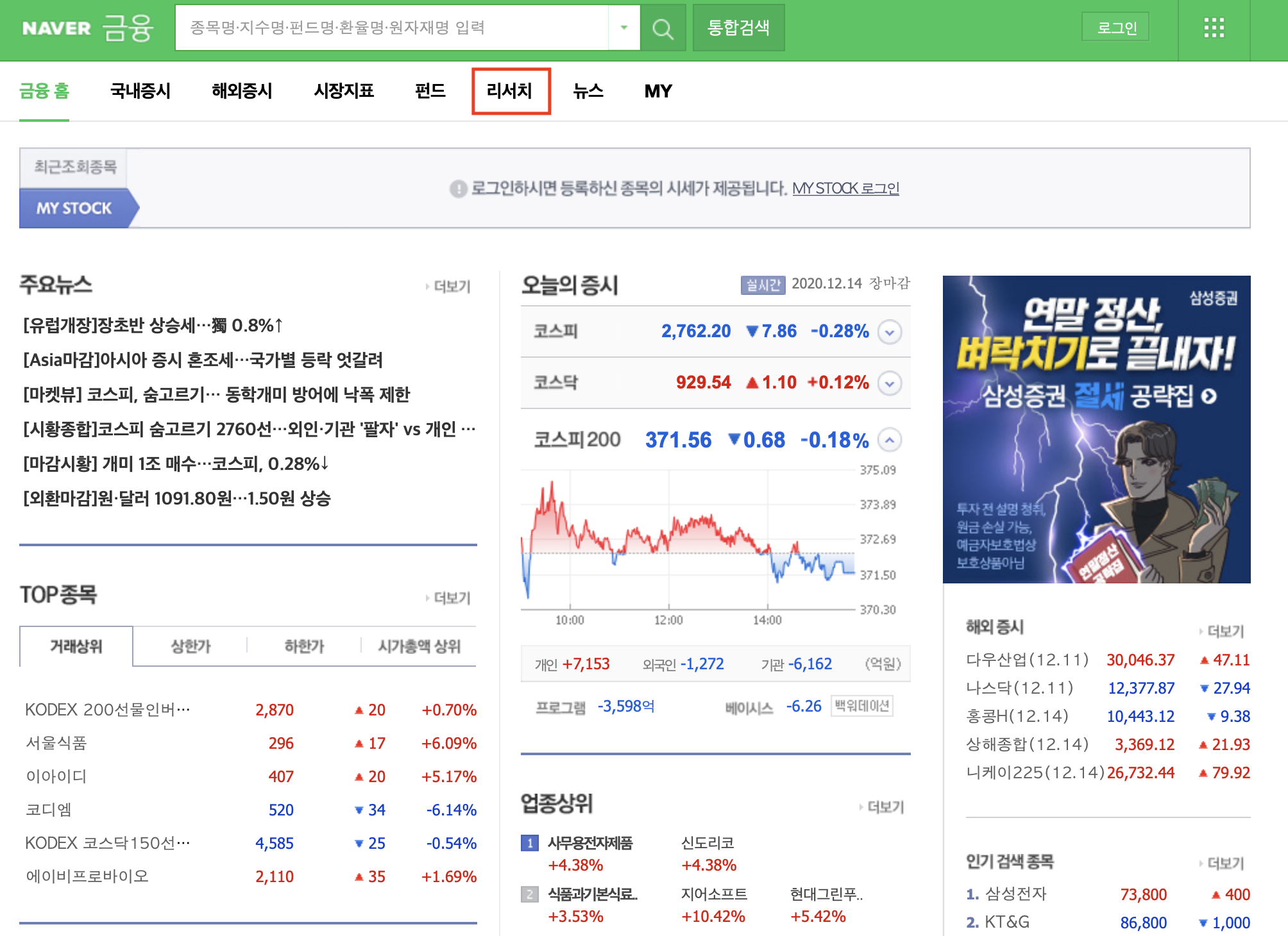 ⊙ 찾아가는 법 : '네이버금융' 검색 → 우측 상단 '리서치' 클릭 → 원하는 리포트 검색 및 확인