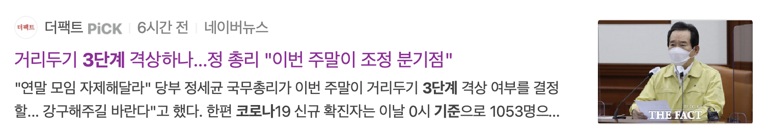 2. 어느새 '코로나 3단계 기준'이 충족되어, 정부에서도 3단계 조치로 격상을 검토하고 있는 것 같습니다.