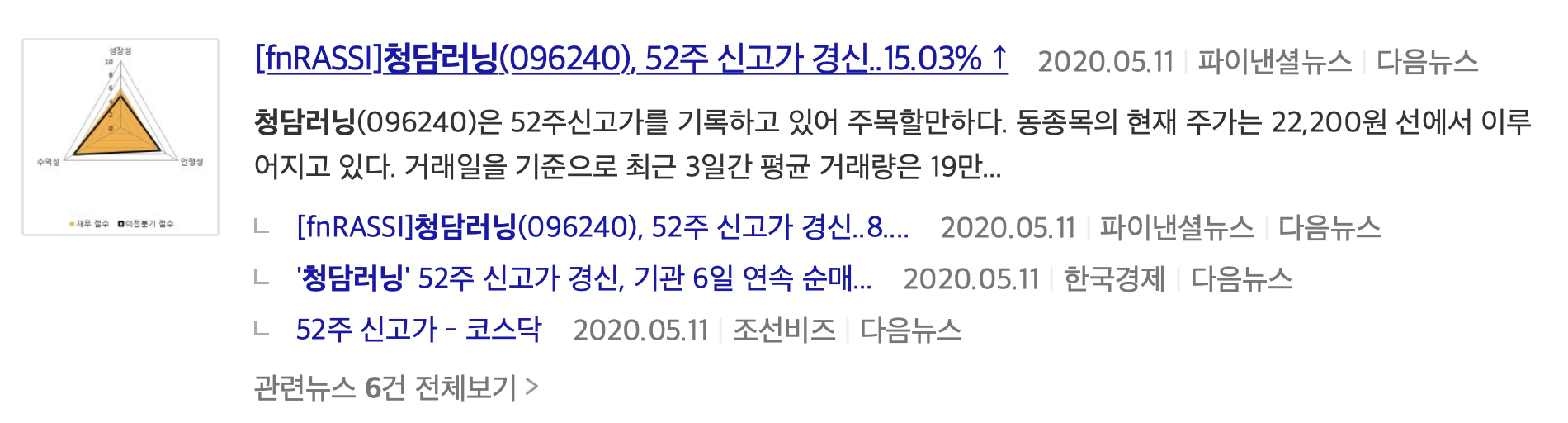 6. 물론 아직까지 '청담러닝'의 주가는 2만 원 초반대에 머물러 있지만, 그래도 주가 상승의 모멘텀을 찾아본다면,