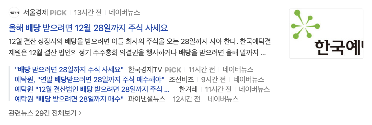 마지막으로 배당 투자를 고민하시는 분이라면, 오는 12월 28일까지 주식을 매수해야 금년도 배당금을 안전하게 수령할 수 있을 것 같습니다.