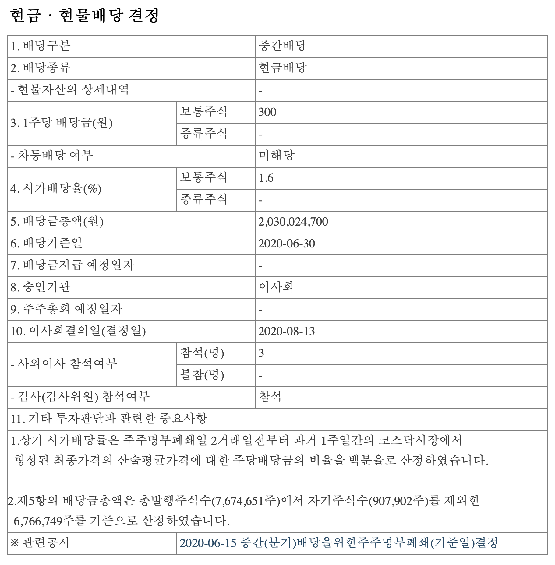 (*물론 '삼성전자'와 같이 분기 배당을 실시하는 기업도 있습니다.)